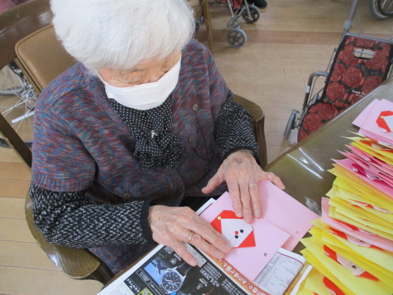 手作りのサンタ人形をプレゼントしました。「かわいいね」「上手に作ってあるね」と、皆様とても嬉しそうなご様子でした。