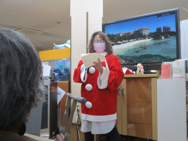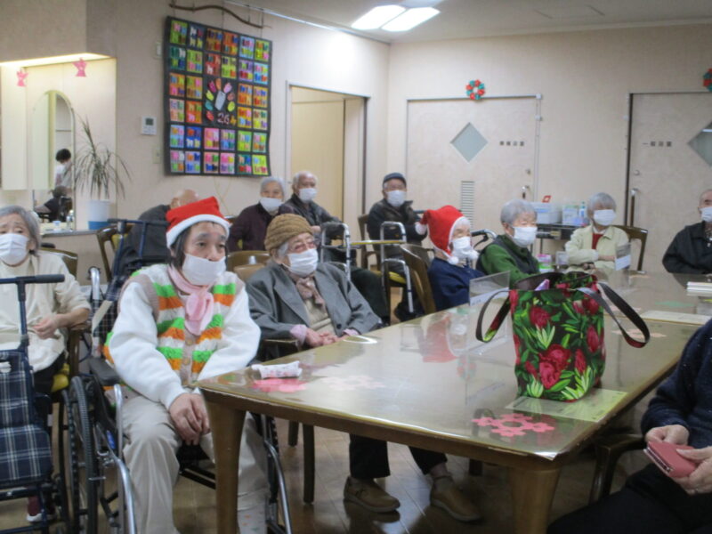 12月の月間レクリエーションは、毎年楽しみにしていただいているクリスマス会を開催しました。